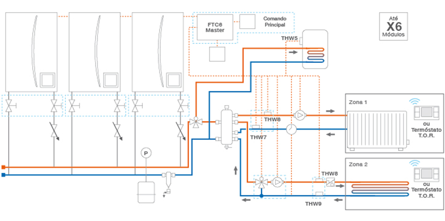 O controlador FTC6 permite gerir até 6 unidades ECODAN, com Hydrobox mural, com a mesma capacidade.