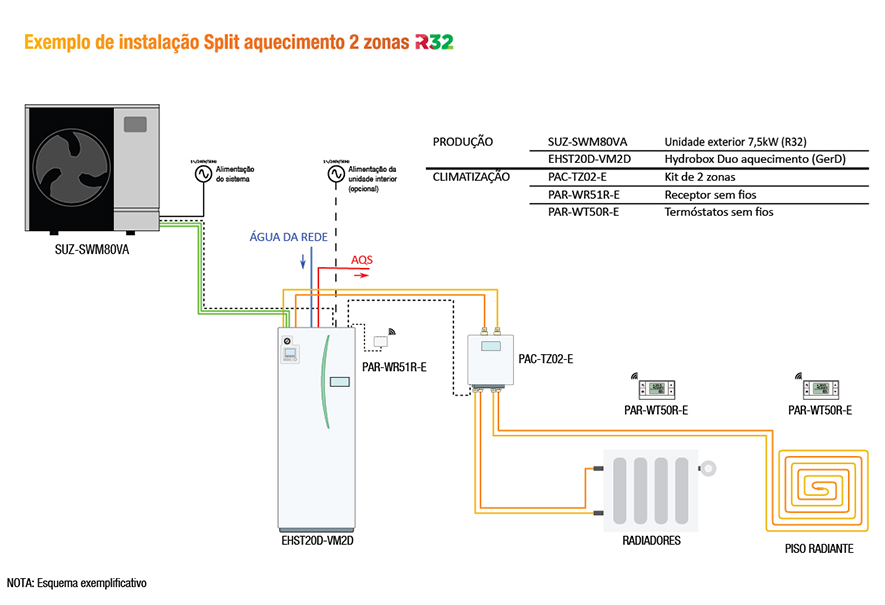 O sistema está disponível em 2 versões: Só Aquecimento e Reversível.