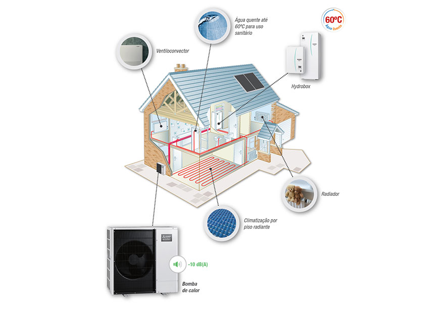 Ecodan Split é um sistema de elevada eficiência, que tem por base o princípio da bomba de calor aerotérmica.