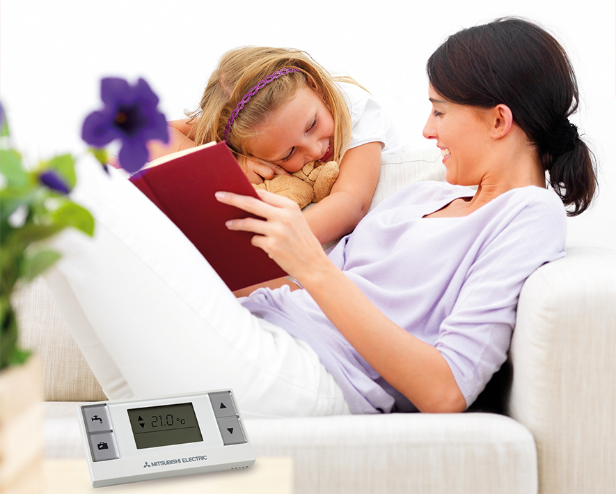 As bombas de calor Ecodan podem ser controladas de várias formas, seja com o controlador fornecido com a bomba de calor, seja com um comando opcional sem fios (com termostato de ambiente incorporado, programação horária semanal da Climatização e AQS), seja com a App MELCloud.