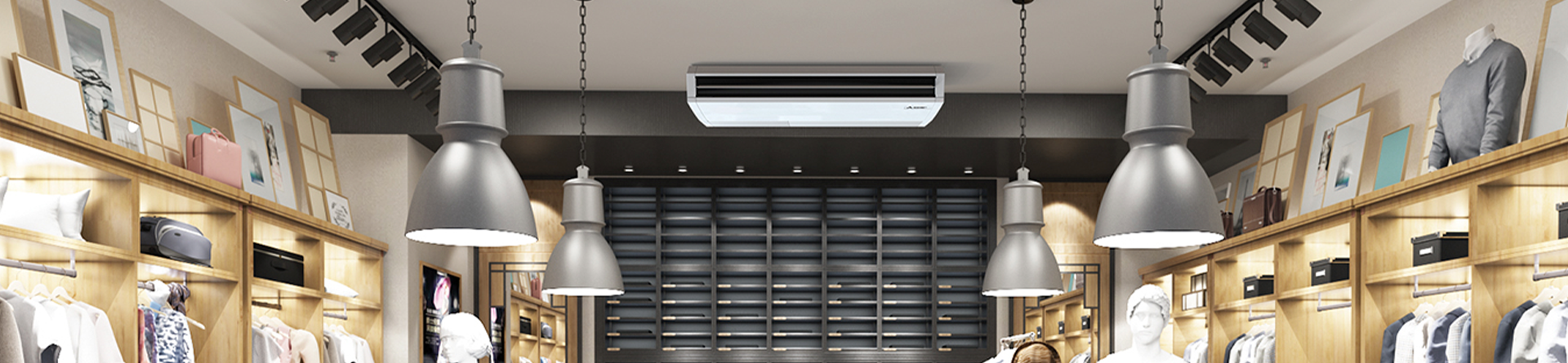 PCA-M Gama Comercial Horizontal de teto Solução ideal para interiores sem tectos falsos e com pouco espaço disponível no chão e nas paredes. Ver